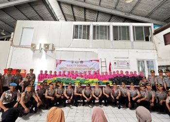 PADANG, METRO–Siswa Sekolah Inspektur Polisi (SIP) Setukpa Lemdiklat Polri Angkatan 54 Gelombang 2 Pengiriman Polda Sumbar menggelar kegiatan bakti sosial dan bakti kesehatan di Kecamatan Bungus Teluk Kabung, Kota Padang, Kamis (21/8).