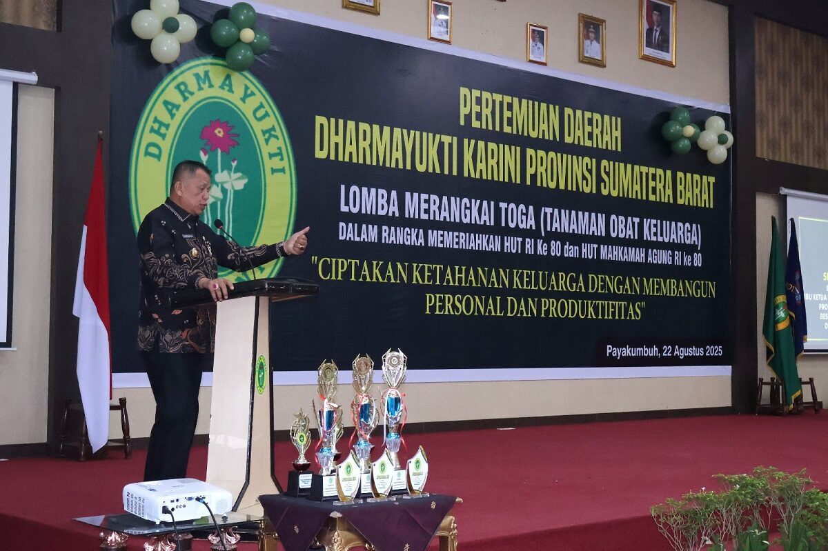 POLIKO, METRO–Kota Payakumbuh mendapat kehormatan menjadi tuan rumah Pertemuan Daerah Dharmayukti Karini (DYK) Provinsi Sumatera Barat yang digelar di Aula Ngalau Indah Balai Kota Payakumbuh, akhir pekan kemarin. Acara ini dirangkai dengan lomba merangkai TOGA (Tanaman Obat Keluarga) dalam rangka memeriahkan Dirgahayu ke-80 Republik Indonesia dan Hari Ulang Tahun Mahkamah Agung RI ke-80. mengusung tema “Ciptakan Ketahanan Keluarga dengan Membangun Personal dan Produktivitas.”