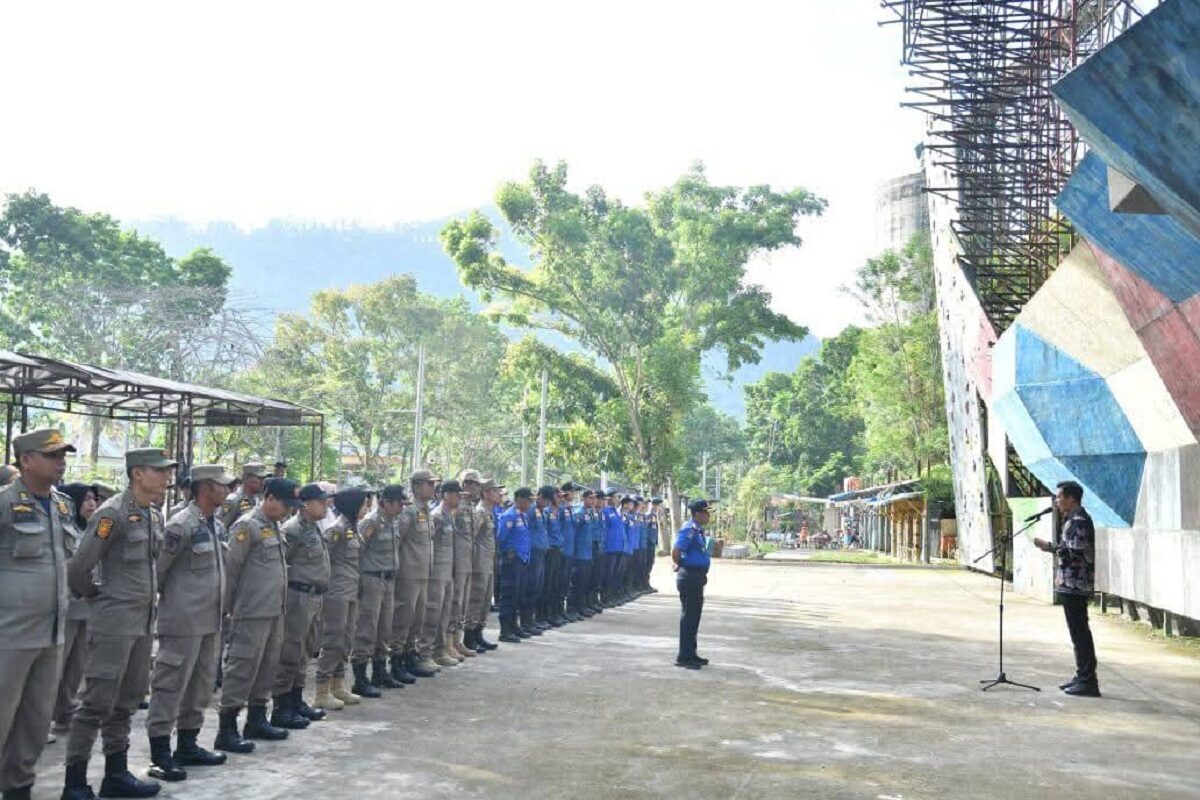 SAWAHLUNTO, METRO–Wali Kota Sawahlunto Riyanda Putra me­nyampaikan arahan dalam apel siaga yang dirangkai dengan pelatihan peningkatan kom­petensi tanggap darurat bagi personel Pe­madam Kebakaran (Damkar), di halaman Kantor Satpol-PP Damkar.
