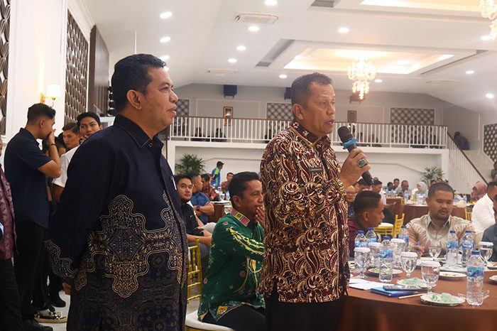 RAKOR— Wakil Wali Kota Payakumbuh, Elzadaswarman, sampaikan usulan dalam rapat koordinasi Kepala Daerah se-Sumatera Barat bersama Wakil Ketua Komisi VI DPR RI Andre Rosiade dan Wakil Gubernur Sumbar, Vasco Ruseimy, di Saka Heritage Hotel Kota Sawahlunto, Sabtu (6/9).