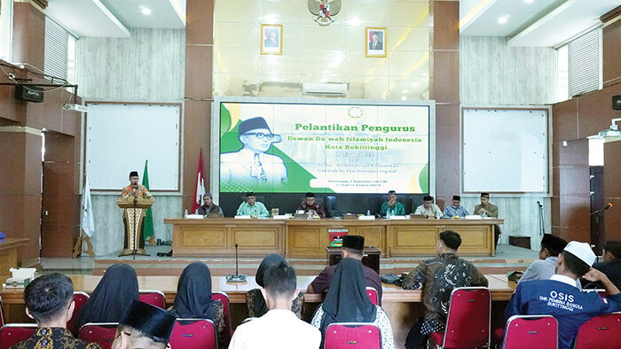 BUKITTINGGI, METRO–Wakil Wali Kota Bukittinggi, Ibnu Asis, menghadiri pelantikan pengurus Dewan Dakwah Islamiyyah Indonesia (DDII) se-Kota Bukittinggi periode 2025–2030. Acara tersebut berlangsung di Aula Balai Kota Bukittinggi, Sabtu (6/9).
