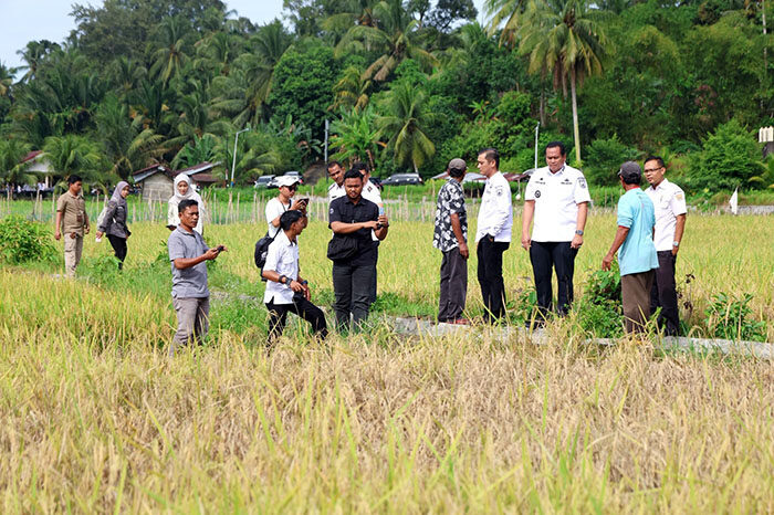 PARIAMAN, METRO–Wali Kota Pariaman Yota Balad bersama Wakil Wali Kota Pariaman Mulyadi meninjau sawah yang terserang hama wereng di Desa Tungkal Selatan dan Desa Sikapak Barat Kecamatan Pariaman Utara, Kota Pariaman, Rabu (10/9).