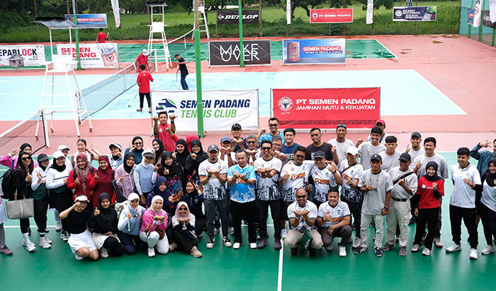 PEMBUKAAN FUN TENNIS— Ketua Umum FKKSP Group, Freddo Syukri membuka Fun Tennis yang diikuti 200 peserta, di Lapangan Tenis PT Semen Padang. Fun Tennis sebagai bagian dari rangkaian Semen Padang Tennis Series 2025, digelar tiga hari 12-14 September 2025 .