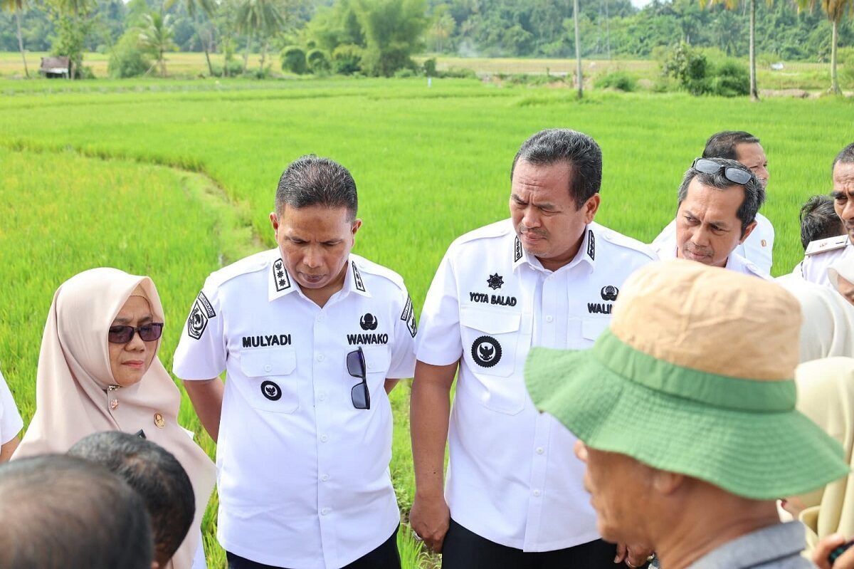 Wali Kota Pariaman Yota Balad bersama Wakil Wali Kota Pariaman Mulyadi, meninjau sawah yang terserang hama wereng di Desa Tungkal Selatan dan Desa Sikapak Barat Kecamatan Pariaman Utara.