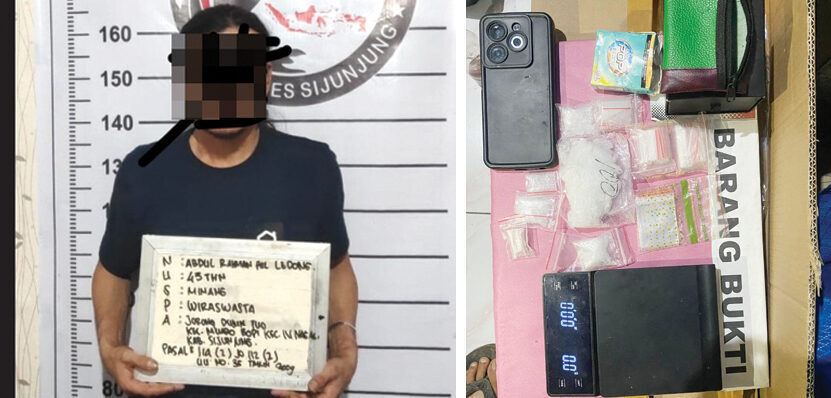 SIJUNJUNG, METRO–Seorang pria berinisial AR (43) alias Ledong warga Jorong Dusun Tuo, Nagari Muaro Bodi Kecamatan IV Nagari ditangkap Satresnarkoba Polres Sijunjung karena kedapatan mengedarkan sabu.