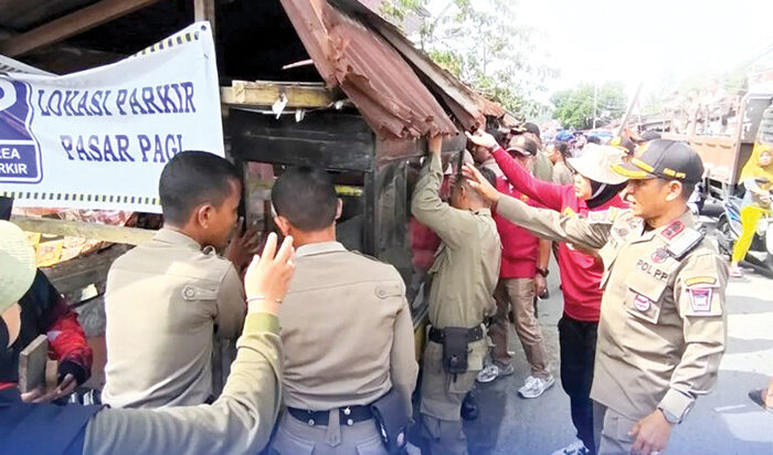 Gunakan Badan Jalan dan Sebabkan Kemacetan, Lapak dan Bangunan Liar di Pasar Pagi Parak Laweh Ditertibkan