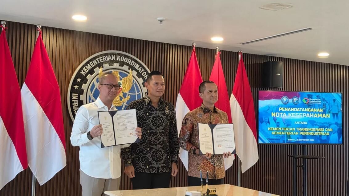 Hal ini sebagaimana telah dilakukannya penandatanganan Nota Kesepahaman oleh Menteri Transmigrasi Muhammad Iftitah Sulaeman bersama dengan Menteri Perindustrian Agus Gumiwang Kartasasmita dengan disaksikan Menko bidang Infrastruktur dan Pembangunan Kewilayahan, Agus Harimurti Yudhoyono di Jakarta, Jumat (26/9).
