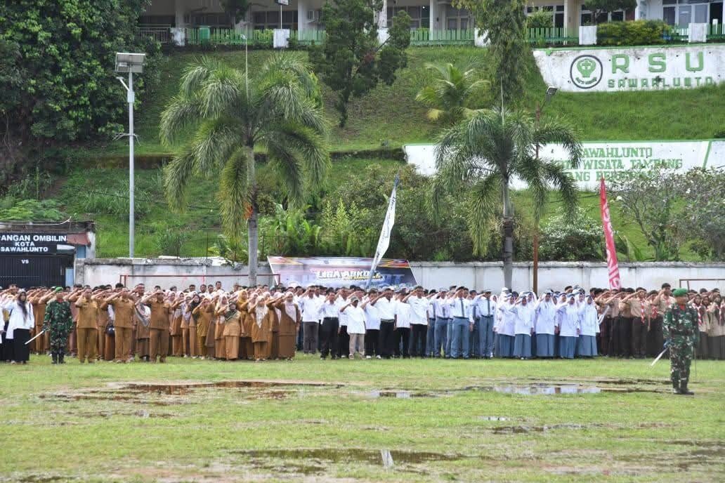 SAWAHLUNTO, METRO–Wali Kota Sawahlunto Riyanda Putra bertindak sebagai inspektur upacara peringatan Hari Kesaktian Pancasila yang dirangkaikan dengan Hari Jadi Provinsi Sumatera Barat, di Lapangan Ombilin, Rabu (1/10).