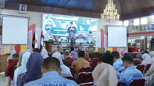 BUKITTINGGI, METRO–Wakil Wali Kota Bukittinggi, Ibnu Asis, memberikan kuliah umum di hadapan civitas akademika dan mahasiswa Institut Teknologi dan Bisnis Haji Agus Salim (ITBHAS) Bukittinggi. Kegiatan yang berlangsung di Istana Bung Hatta, Sabtu (4/10), itu berlangsung penuh inspirasi dan motivasi.