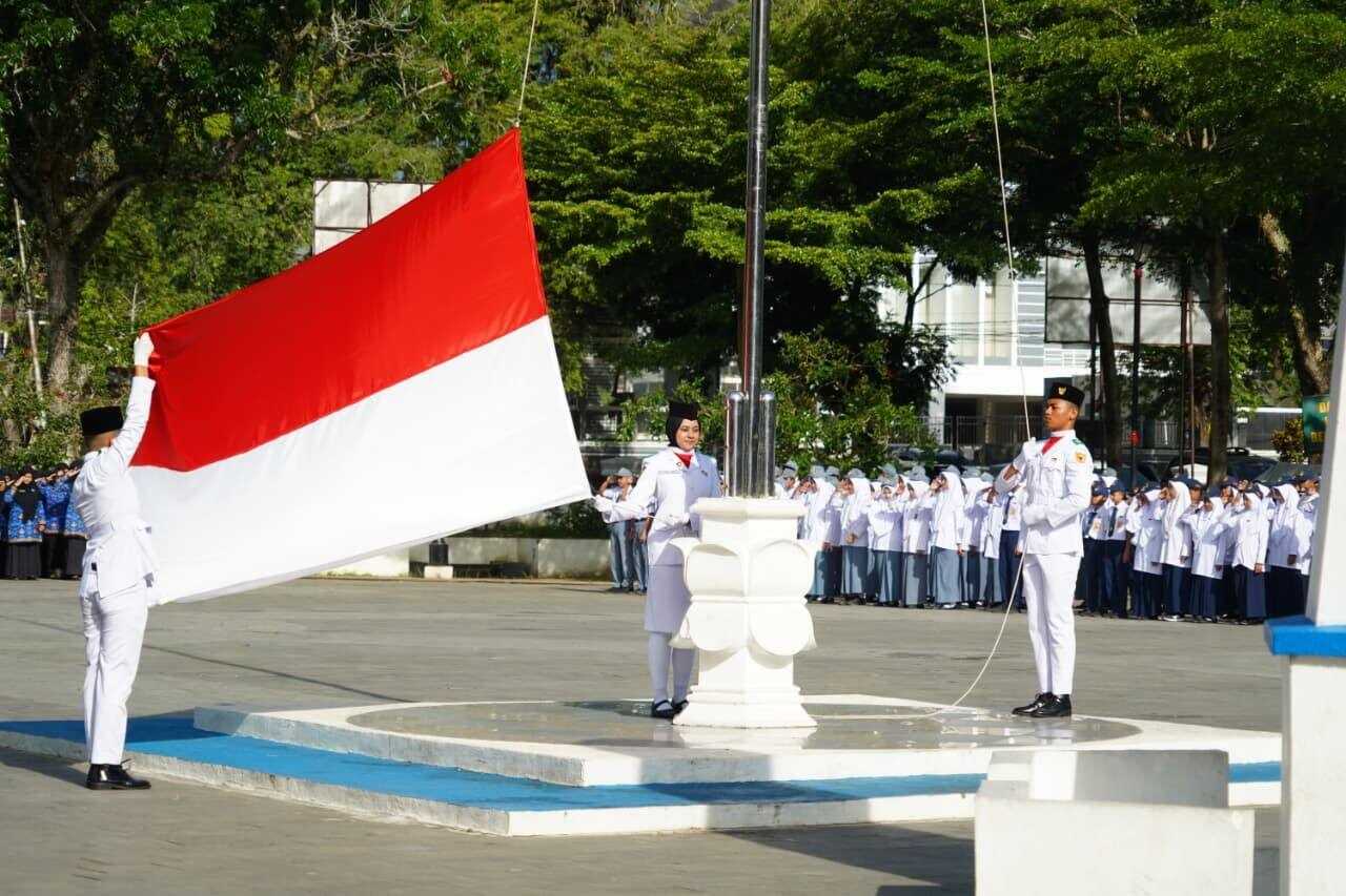 Pengibaran Sang Merah Putih dilakukan oleh siswa dan siswi dari SMA N 6 Solok Selatan dan diiringi dengan lantunan musik dari korps musik SMP N 14 Solok Selatan.