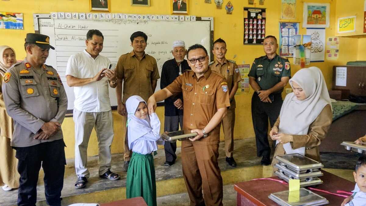 Usai meresmikan dapur MBG, Sekda bersama rombongan meninjau langsung kegiatan penyaluran makanan bergizi ke SD Al Hidayah Sungai Aur.
