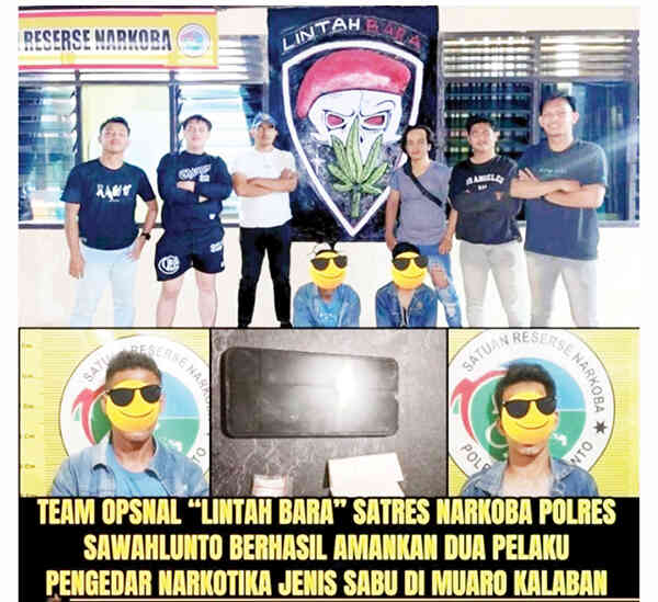 SAWAHLUNTO, METRO–Tim Opsnal Satresnarkoba Polres Sawahlunto mengamankan dua orang pelaku tindak pidana narkotika jenis sabu setelah menggerebek salah satu rumah di kawasan Dusun Balai-Balai, Desa Muaro Kalaban, Kecamatan Silungkang, Rabu (12/11) sekitar pukul 21.00 WIB.