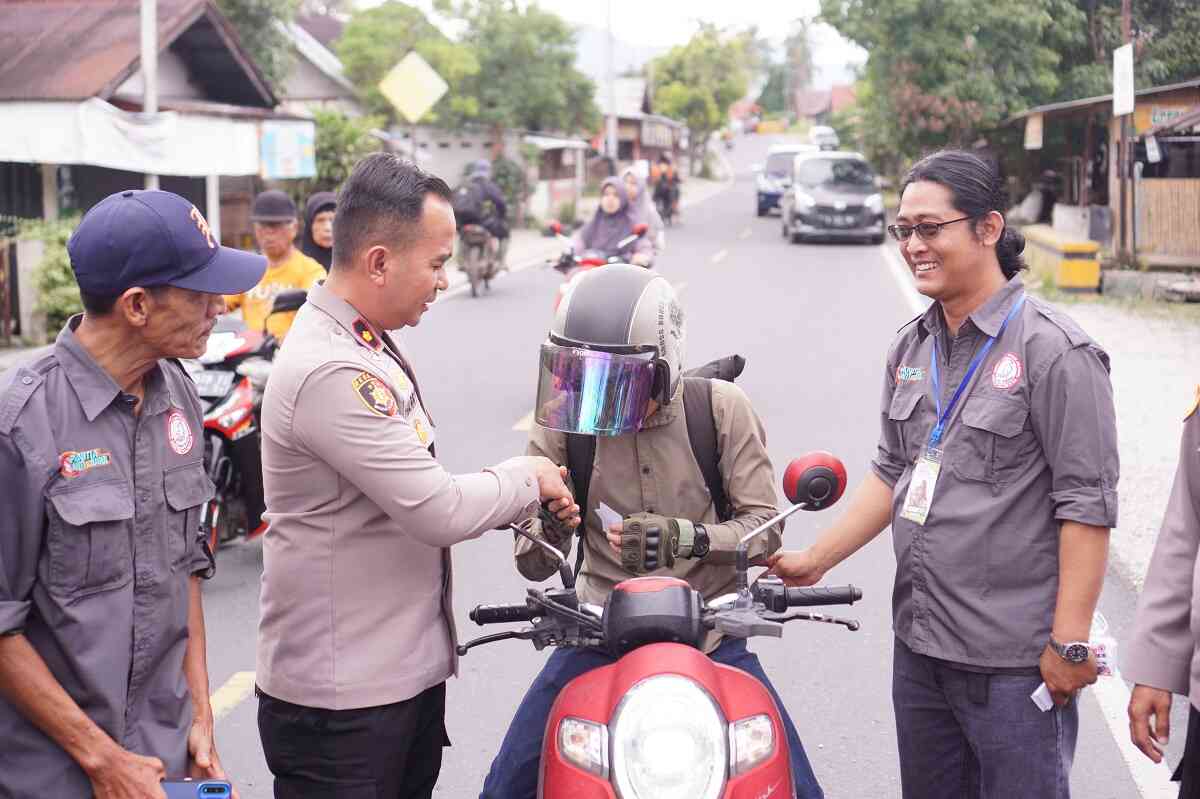 SOSIALISASI—Ketua SPRI DPC Solok Selatan, Bustanul Deno, saat melakukan sosialsasi pada pengedara kendaraan roda dua.