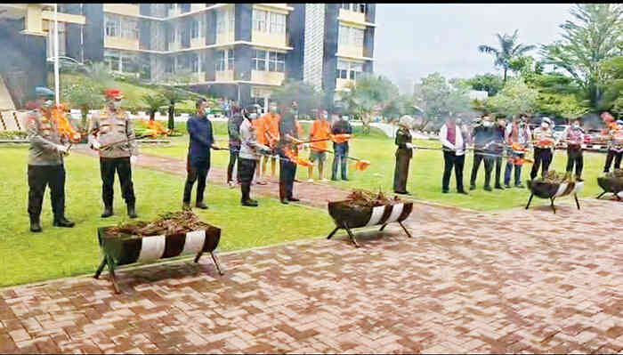 Pemusnahan dipimpin langsung Direktur Reserse Narkoba (Dirresnarkoba) Polda Sumbar Kombes Pol Wedy Mahadi didampingi Kabid Humas Kombes Pol Susmelawati Rosya dan dihadiri oleh Jaksa Penuntut Umum (JPU), kuasa hukum para tersangka serta unsur Forkopimda lainnya.
