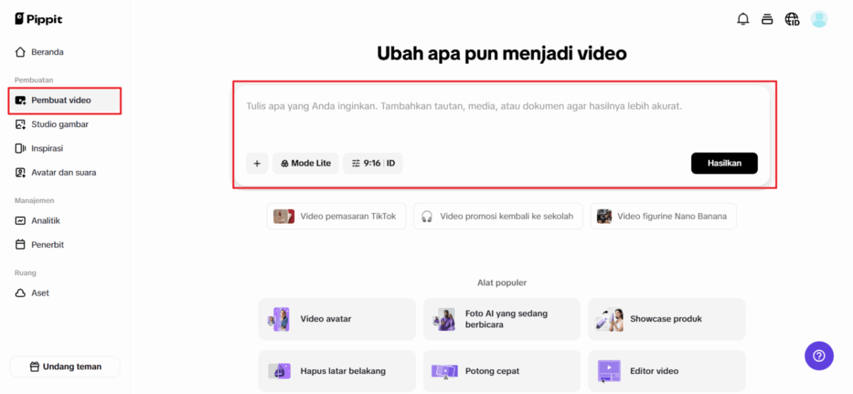 Sekarang setelah kamu tahu apa yang mungkin, berikut adalah cara kamu membuat video dari foto menggunakan Pippit.