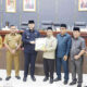 PADANG, METRO–Ketua DPRD Sumbar Muhidi yang didampingi Wakil Ketua DPRD Sumbar Evi Yandri Rajo Budiman dan juga Sekretaris DPRD Sumbar Maifrizon sambut kedatangan Kepala Kejaksaan Tinggi Provinsi Sumatera Barat (Kajati Sumbar) Muhibuddin di ruang kerja Ketua DPRD Sumbar, Senin (24/11).