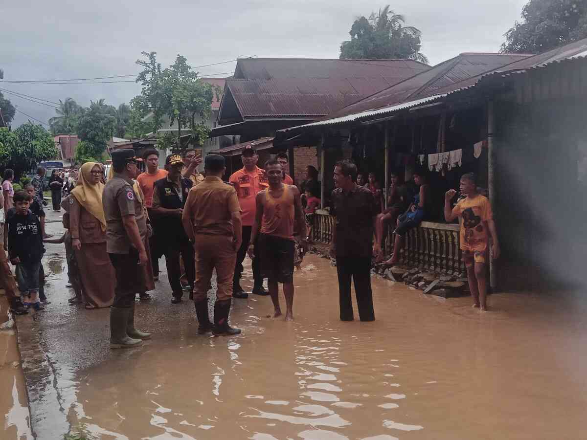 Wakil Bupati Pesisir Selatan Risnaldi Ibrahim blusukan ke lokasi banjir, Senin (24/11). Bupati didampingi Plt Kalaksa BPBD Mulyandri.