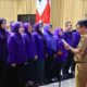 BUNDA LITERASI—Wali Kota Pariaman Yota Balad Ny. Yosnely Balad saat kukuhkan Bunda Literasi Kota Pariaman Periode 2025-2029 di Gedung Perpustakaan Umum Daerah Kota Pariaman.