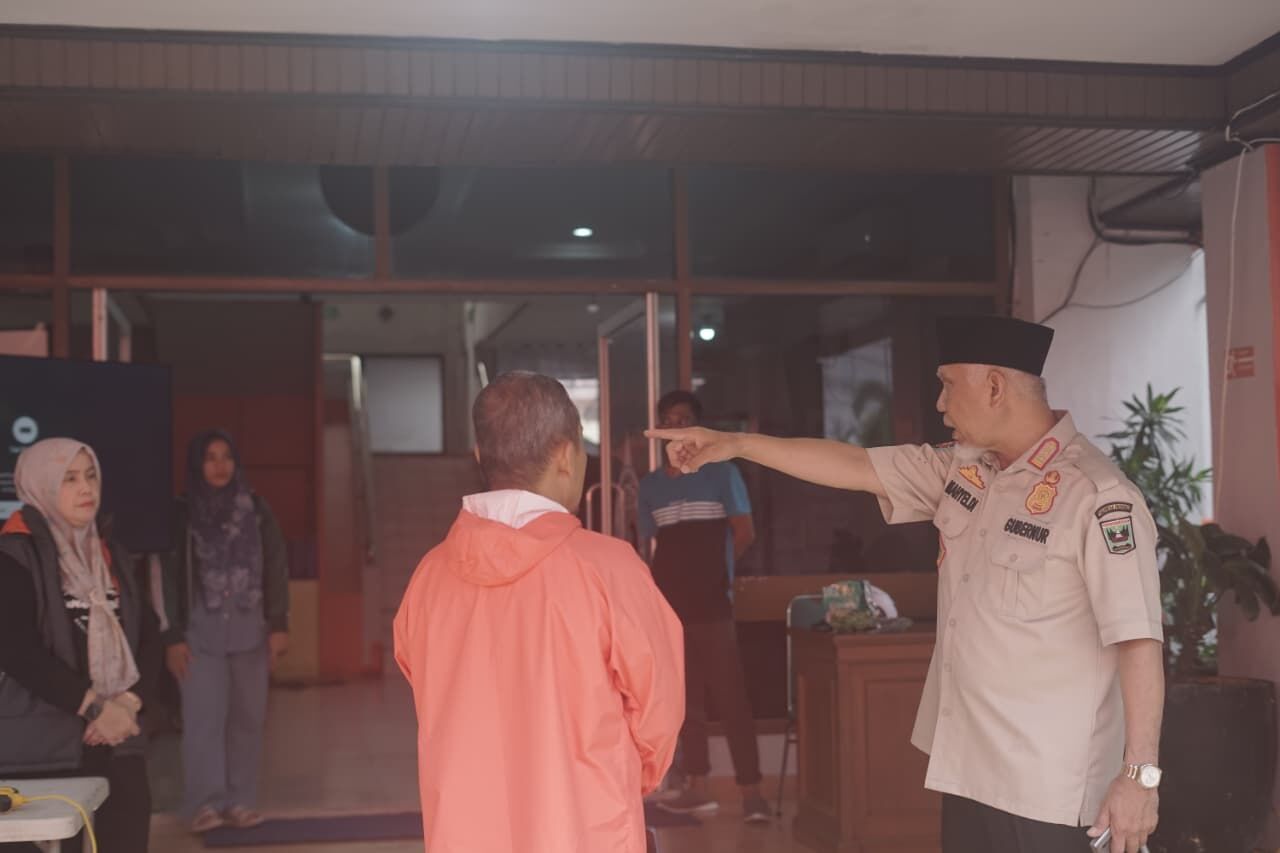 PADANG, METRO—Gubernur Sumatera Barat, Mahyeldi Ansharullah, melakukan inspeksi mendadak (sidak) ke Posko Bencana Sumbar di Kantor BPBD Sumbar, Jumat (28/11).