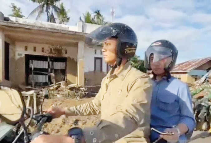 AGAM, METRO–Wakil Presiden Gibran Rakabuming Raka menyusuri jalur ekstrem dengan motor trail untuk mengunjungi lokasi terdampak banjir bandang dan longsor di Kabupaten Agam, Sumatera Barat, Kamis (4/12). Agam menjadi lokasi pertama yang dituju dalam rangkaian kunjungan kerja Gibran ke tiga provinsi terdampak bencana di Sumatra, yakni Aceh, Sumatera Utara, dan Sumatera Barat.
