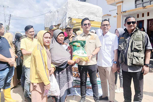 PADANG, METRO—Anggota Komisi III DPRD Padang Dr. Muhammad Tommy Arby Rumengan, bersama rekannya memberikan bantuan sebanyak beras 10 Ton dan 600 kardus mie instan kepada korban banjir dan longsor.