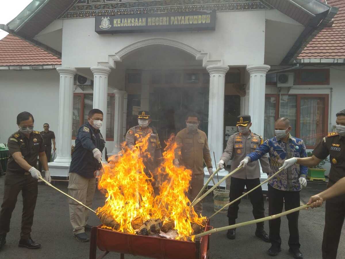 PAYAKUMBUH, METRO –Kejaksaan Negeri Pa­yakumbuh musnahkan puluhan Barang Bukti (BB) Narkotika yang telah ber­kekuatan hukum tetap, pemusnahan yang digelar Selasa (9/12), di halaman Kantor Kejaksaan di Kawasan Bulakan Balai Kandi Kecamatan Payakumbuh Barat itu dihadiri Ka­polres Payakumbuh, AK­BP. Ricky Ricardo, Kapolres 50 Kota, AKBP. Syaiful Wachid, Ketua Pengadilan Negeri, Adiswarna, Kepala BNNK Payakumbuh, Kepala Loka POM serta para Kasi di lingkungan Kejaksaan.