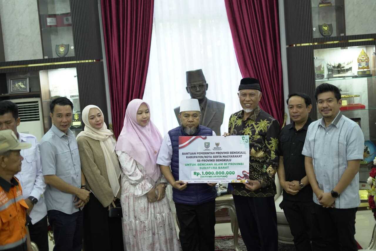 Bantuan diserahkan langsung oleh Gubernur Bengkulu, Helmi Hasan, kepada Gubernur Sumbar, Mahyeldi Ansharullah, di Istana Gubernur Sumbar, Kamis (11/12).