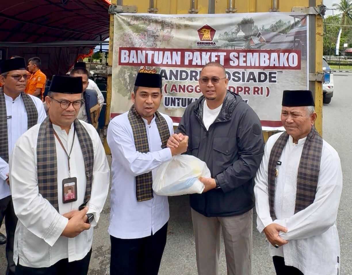 SOLOK, METRO—Wakil Ketua Komisi VI Dewan Perwakilan Rakyat (DPR) RI Andre Rosiade kembali menunjukkan kepeduliannya kepada masyarakat dengan menyerahkan bantuan sebanyak 1.500 paket sembako kepada Pemerintah Kota Solok, Senin (15/12). Bantuan tersebut ditujukan untuk membantu meringankan beban masyarakat korban banjir bandang dan akan didistribusikan melalui mekanisme pemerintah daerah agar tepat sasaran.