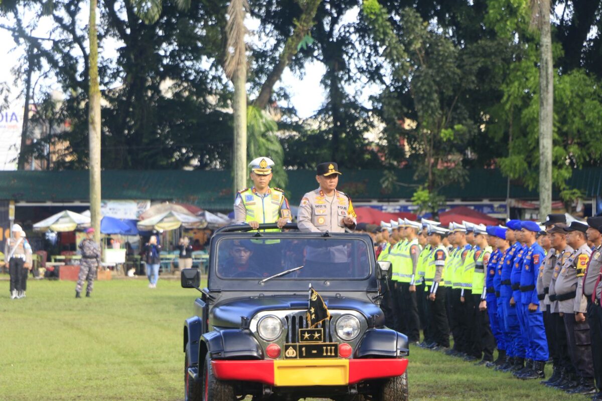 PADANG, METRO–Jamin keamanan dan kelancaran masyarakat perayaan Natal 2025 dan Tahun Baru 2025, Polda Sumbar menggelar Operasi Lilin Singgalang yang ditandai dengan digelarnya Apel Gelar Pasukan di lapangan RTH Imam Bonjol Padang, Jumat (19/12).