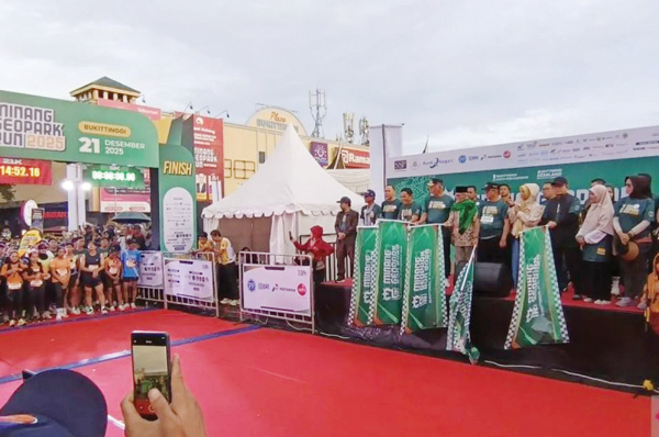 BUKITTINGGI, METRO–Ajang Minang Geopark Run (MGR) 2025 sukses digelar di Kota Bukittinggi, Minggu (21/12). Mengu­sung tema “Sumbar Bangkit”, event lari tahunan ini menjadi wujud kepedulian terhadap kondisi Sumatera Barat yang terdampak bencana banjir dan tanah longsor akibat cuaca ekstrem dalam beberapa waktu terakhir.