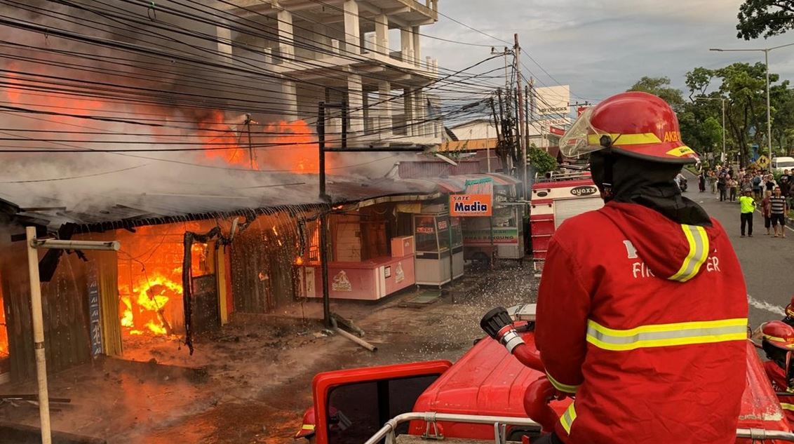 PADANG, METRO—Kebakaran hebat melanda kawasan pertokoan dan rumah warga di Jalan Prof. Hamka Nomor 1, Simpang Cendrawasih, Kelurahan Air Tawar Barat, Kecamatan Padang Utara, Kota Padang, Minggu (21/12/2025) pagi. Peristiwa tersebut menghanguskan sembilan petak toko dan satu unit rumah hunian, dengan total kerugian ditaksir mencapai Rp1 miliar.