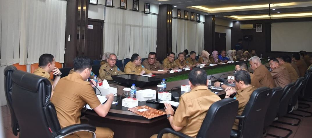 SAWAHLUNTO, METRO–Wali Kota Sawahlunto Riyanda Putra bersama Wakil Wali Kota Jeffry Hibatullah memimpin rapat pimpinan (rapim) membahas perkembangan program prioritas Pemerintah Kota Sawahlunto, di Balaikota.