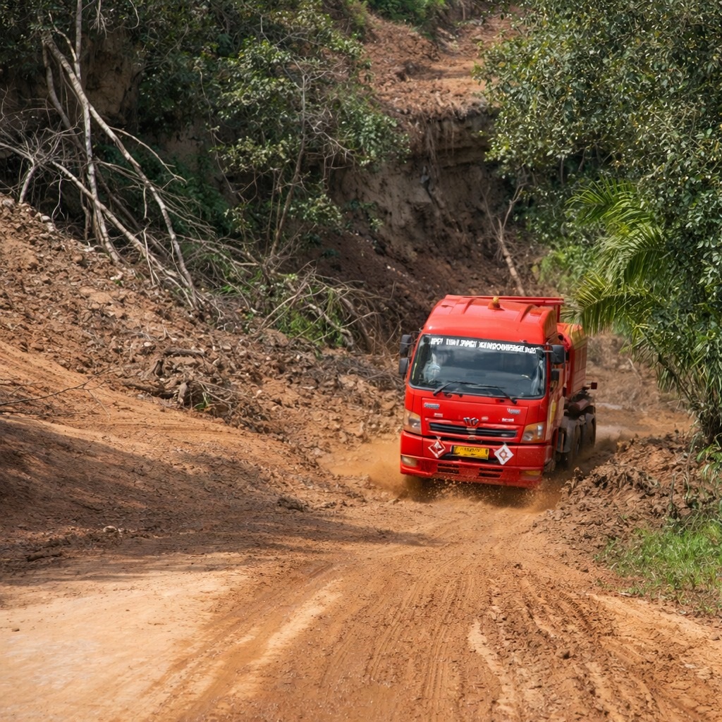 SALURKAN BBM—Truk tangki Pertamina menembus daerah terdampak bencana untuk menyalurkan BBM kepada masyarakat.