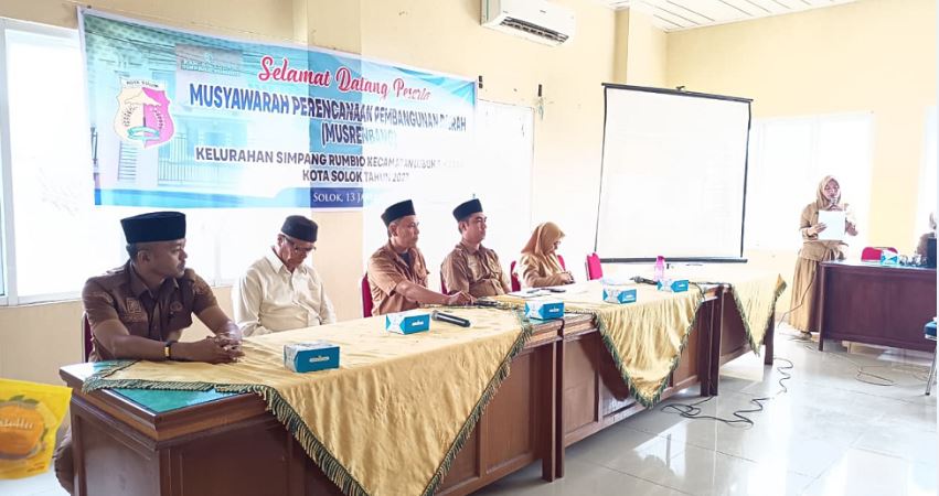 SOLOK, METRO–Dalam Musyawarah Ren­cana Pembangunan (Musrenbang) Kelurahan Simpang Rumbio, Kota Solok, ada tiga program prioritas nasional yang dapat menjadi acuan.  Diantaranya, pengentasan kemiskinan, kemudian pengentasan stunting dan kegiatan pemberdayaan masyarakat.