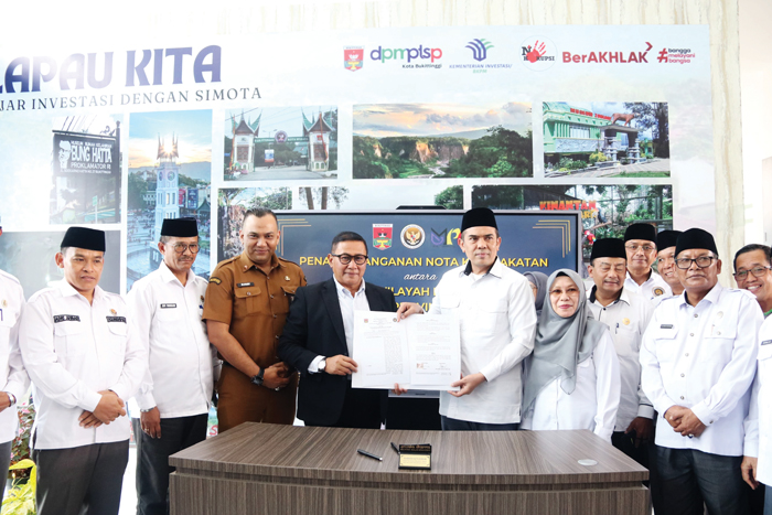 BUKITTINGGI, METRO–Pemerintah Kota Bukittinggi resmi menjalin kerja sama dengan Kantor Wilayah Kementerian Haji dan Umrah Provinsi Sumatera Barat dalam penyelenggaraan pelayanan haji dan umrah. Penandatanganan Perjanjian Kerja Sama (MoU) tersebut dilaksanakan di Mall Pelayanan Publik (MPP) Kota Bukittinggi, Senin (19/1).