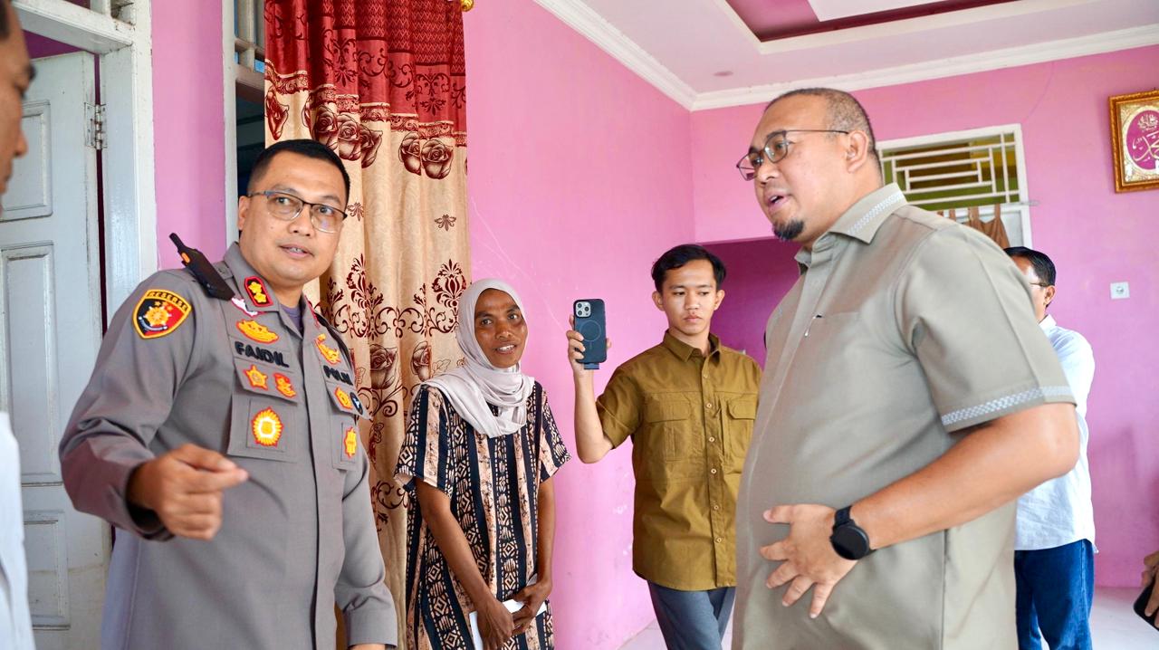 DATANGI RUMAH KORBAN— Wakil Ketua Komisi VI DPR RI Andre Rosiade bersama Wakapolresta Padang AKBP Faidil Zikri mendatangi rumah keluarga korban kasus pelecehan anak di kawasan Pasir Jambak, Padang.