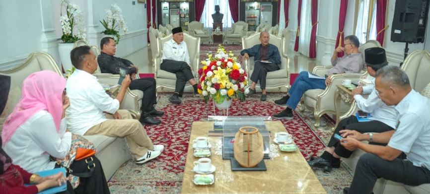 KUNJUNGAN IKB PEKANBARU— Gubernur Mahyeldi saat menerima kunjungan pengurus IKB Pekanbaru, membahas usulan Mr. Assaat Datuak Mudo untuk dianugerahi gelar Pahlawan Nasional, di Istana Gubernuran.