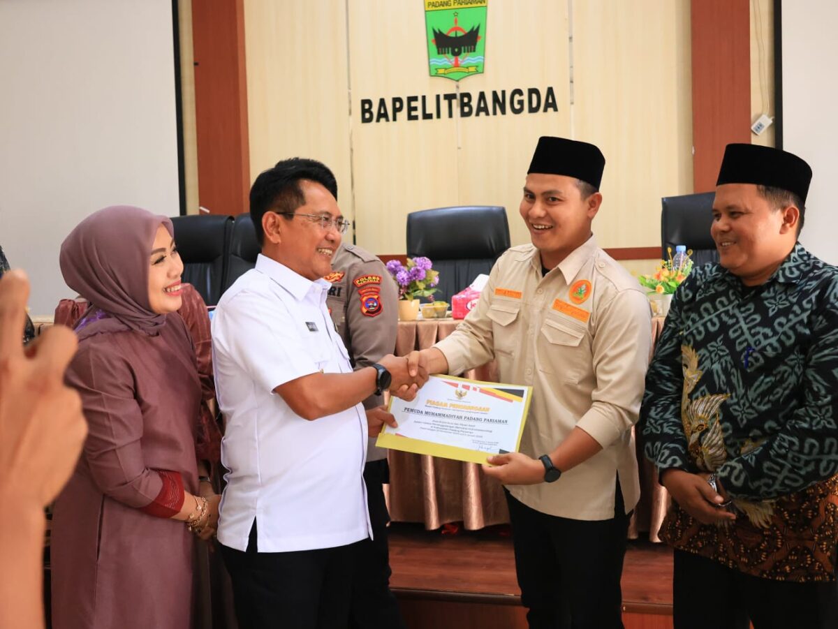 PDG.PARIAMAN, METRO–Bupati Padangpariaman, John Kenedy Azis, menyerahkan piagam penghargaan kepada para relawan tahap II atas dedikasi dan kontribusi mereka dalam penanganan bencana di Kabupaten Padangpariaman. Penyerahan penghargaan tersebut berlangsung di Hall Bapelitbangda Padangpariaman.