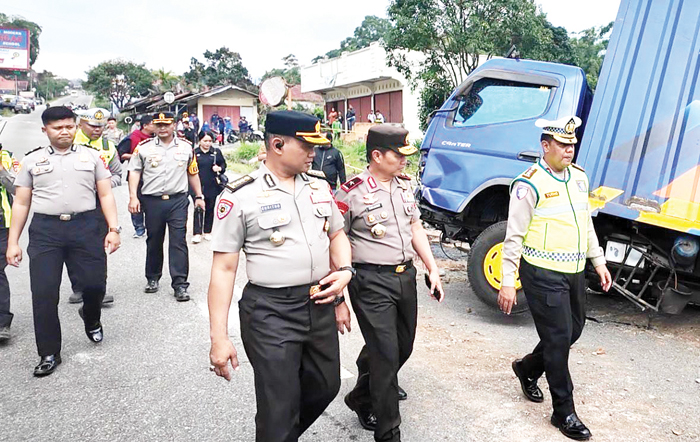TANAHDATAR, METRO—Wakapolda Sumbar Brigjen Pol Solihin turun langsung ke tempat kejadian perkara (TKP) kecelakaan lalu lintas di Jalan Raya Padang Panjang–Bukittinggi, tepatnya di Jorong Pincuran Tinggi, Nagari Panyalaian, Kabupaten Tanah Datar, Senin (26/1).