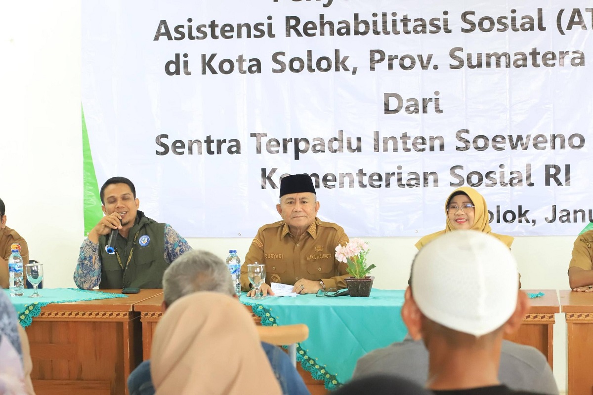 SOLOK, METRO–Wakil Wali Kota Solok, Suryadi Nurdal, S.H, secara resmi membuka sekaligus melakukan penyerahan Bantuan Asistensi Rehabilitasi Sosial (ATENSI) di Kota Solok, Provinsi Sumatera Barat. Bantuan tersebut merupakan program dari Kementerian Sosial Republik Indonesia melalui Sentra Terpadu Inten Soeweno (STIS) Bogor, yang pada kesempatan ini diwakili oleh Bapak Rudianto.