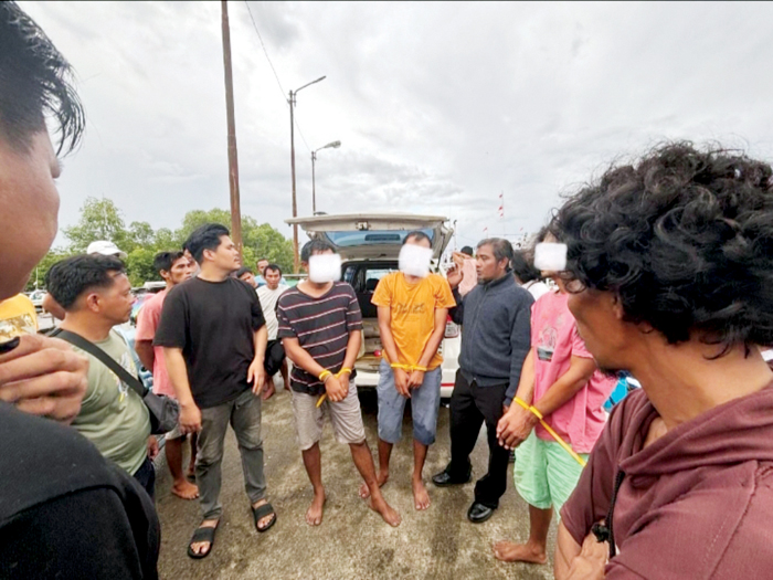 PESTA SABU— Tiga pelaku yang kedapatan pesta sabu di atas kapal ditangkap Tim Satresnarkoba Polres Mentawai.