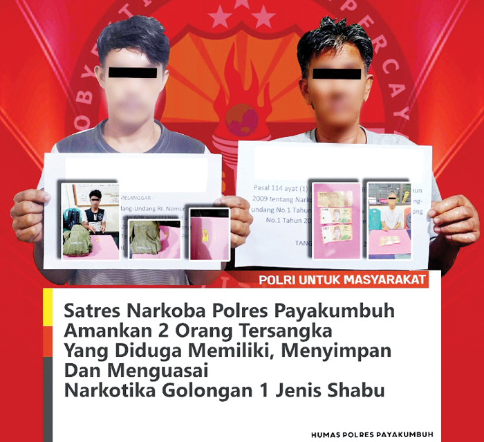 Kedua pelaku kemudian dibawa ke Mapolres Payakumbuh untuk menjalani proses penyidikan lebih lanjut. Polisi memastikan seluruh tahapan penangkapan dan pemeriksaan dilakukan sesuai prosedur hukum yang berlaku.