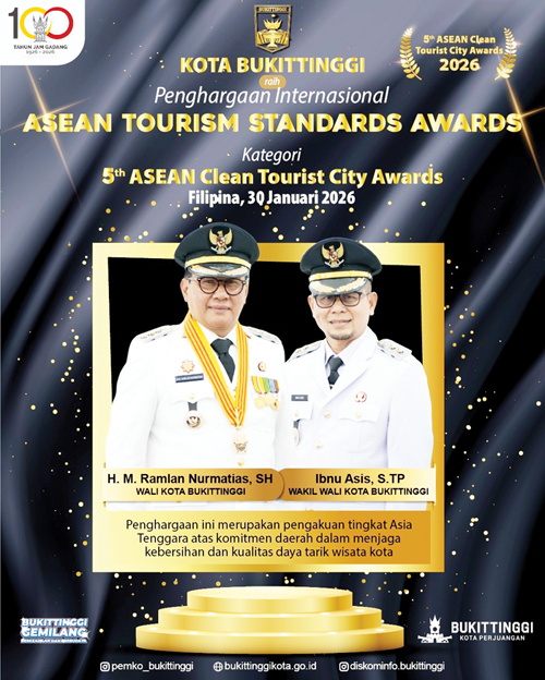 Capaian ini semakin mempertegas posisi Bukittinggi sebagai salah satu destinasi wisata unggulan Indonesia yang tidak hanya kaya sejarah dan budaya, tetapi juga unggul dalam pengelolaan kebersihan dan lingkungan. (pry)