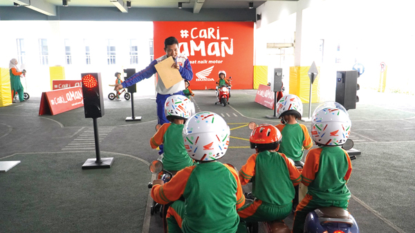 Para instruktur Safety Riding Astra Honda berhasil tampil meyakinkan melalui inovasi edukasi keselamatan berkendara bagi anak-anak usia Golden Age (2 – 6 tahun) dengan menggunakan miniatur lalu lintas. Melalui miniatur yang dikembangkan, anak-anak mendapatkan gambaran situasi berkendara yang interaktif. Inovasi miniatur lalu lintas juga didukung hadirnya metode edukasi dua arah yang menyenangkan bagi anak-anak.