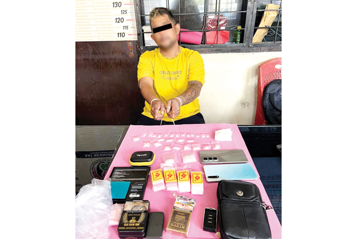 “Ketika tim melakukan penggeledahan, ditemukanlah barang bukti berupa 28 paket sabu dibungkus plastik bning dengan kondisi siap edar. Selain itu, ada juga barang bukti lainnya termasuk timbangan digital,” tegas AKP Hendra.