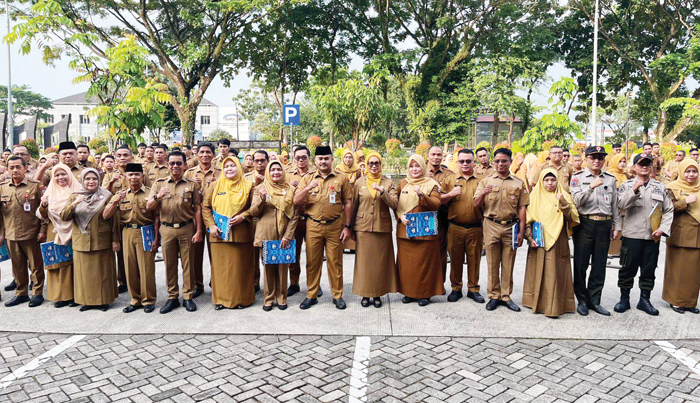 AIE PACAH,METRO—Pemko Padang menyerahkan penghargaan kepada Aparatur Sipil Negara (ASN) terbaik semester II 2026 dalam kegiatan apel gabungan di halaman Balai Kota Padang, Aie Pacah, Senin (2/2). Penyerahan ini merupakan bentuk apresiasi atas dedikasi karyawan di lingkungan pusat pemerintahan.