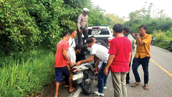 “Untuk pengemudi sepeda motor Yasrizal dan satu penumpang lagi Salwa Maharani mengalami luka-luka. Sedangkan pengemudi dan penumpang mobil hanya luka-luka dan tidak butuh perawatan,” ujar AKP Ade.