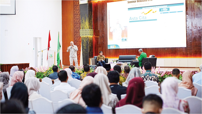 PADANG, METRO–Universitas Andalas menggelar Seminar Beasiswa LPDP Tahap 1 Tahun 2026 dengan menghadirkan Direktur Investasi Lembaga Pengelola Dana Pendidikan (LPDP), Muhammad Oriza, sebagai pemateri. Kegiatan ini berlangsung di Convention Hall Kampus Limau Manis, Kamis (5/2), dan diikuti oleh mahasiswa serta dosen dari berbagai fakultas.