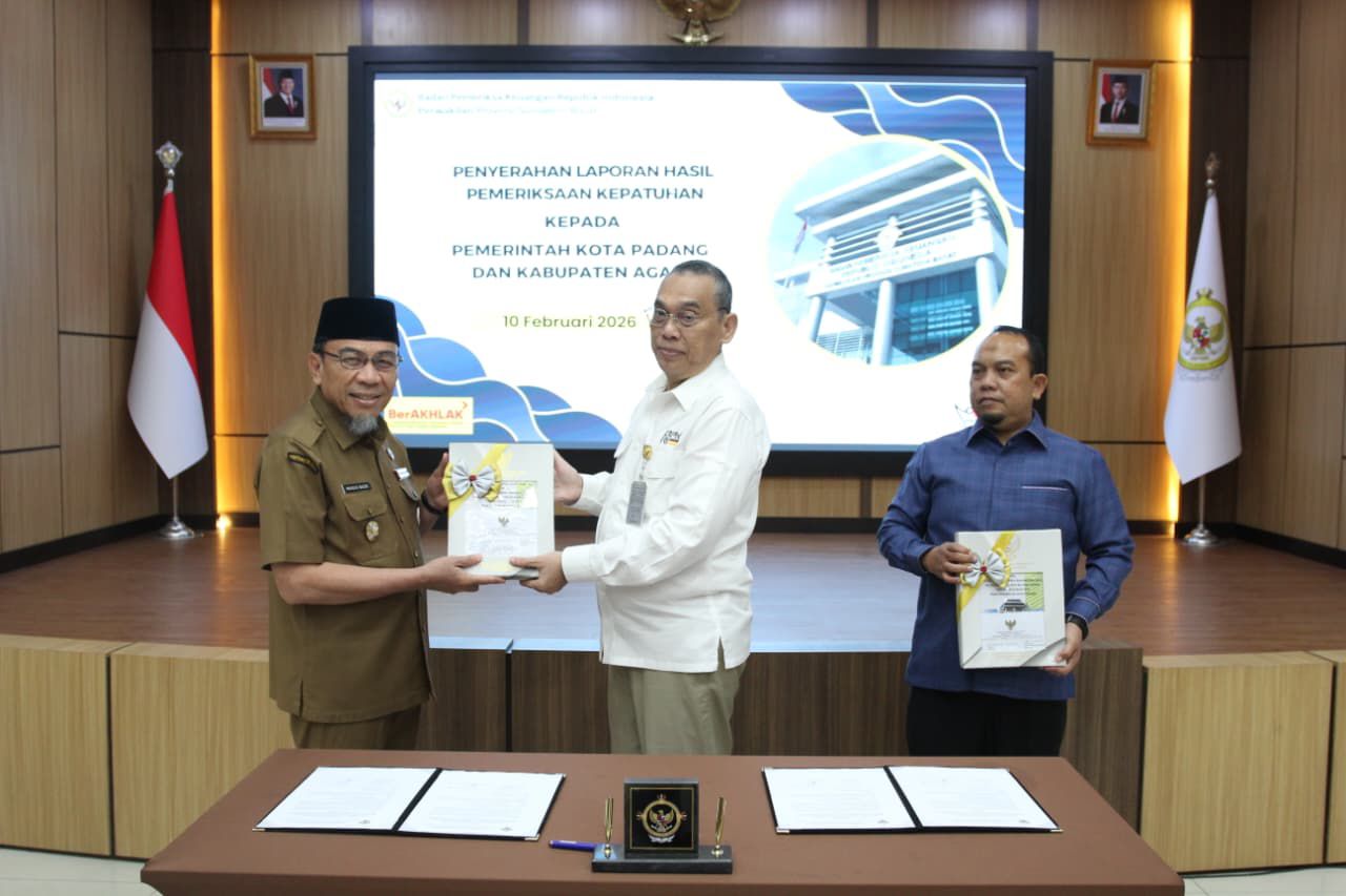 Penyerahan LHP ini dilaksanakan bersamaan dengan entry meeting pemeriksaan interim atas Laporan Keuangan Pemerintah Daerah (LKPD) Kota Padang Tahun Anggaran 2025, yang berlangsung di Aula Kantor BPK Sumbar, Selasa (10/2).