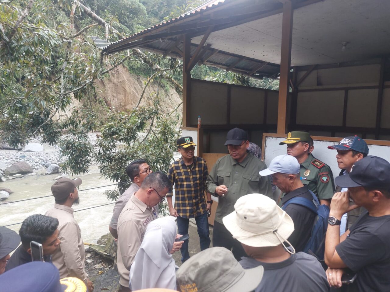 Selanjutnya, Arry Yuswandi bersama rombongan bergerak menuju lokasi KM 7 Lembah Anai. Tepatnya di lokasi bangunan Rumah Makan Mangguang.